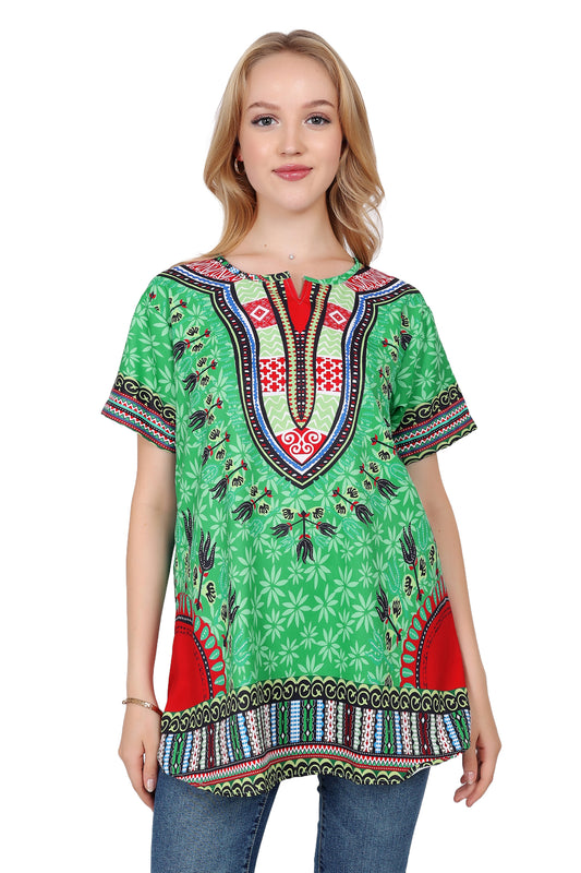 Blusa Afrocaribeña de Dama Estampado Verde