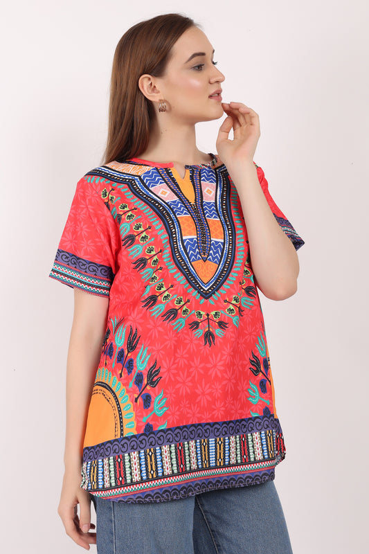 Blusa Afrocaribeña de Dama Estampado Rojo