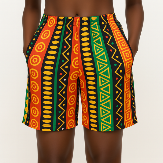 Set Traje Afrocaribeño de Dama de 3 piezas. Blusa, Short y Turbante. Celebracion Afrodescendiente Dia del Negro