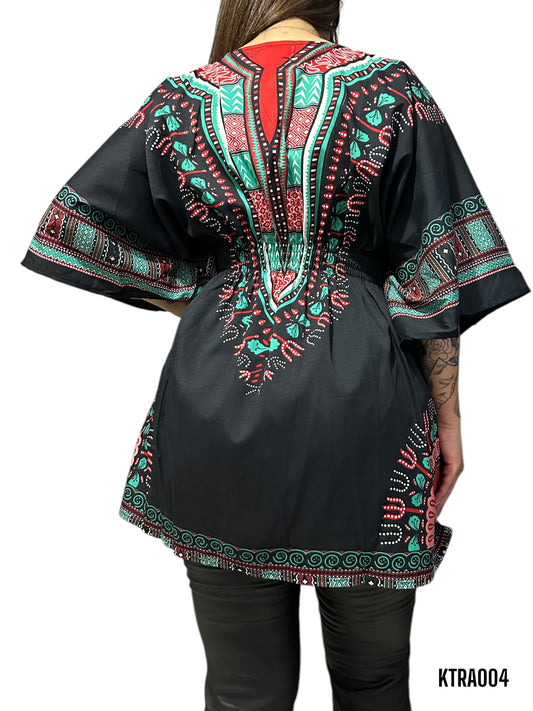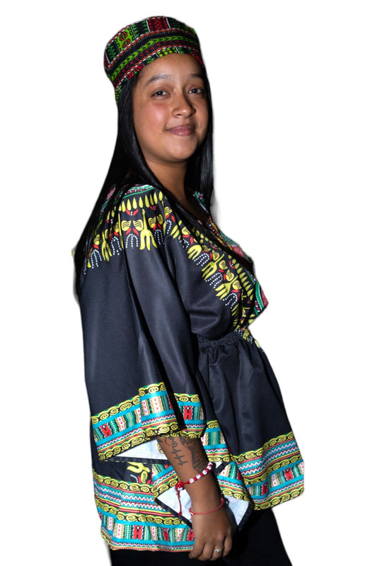 Top Blusa de Dama con Estampado Afrocaribeño Negro