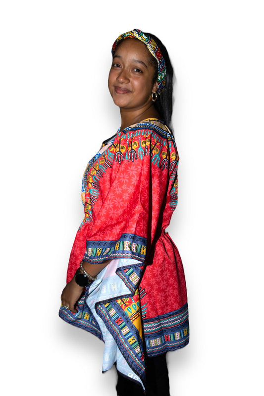 Top Blusa de Dama con Estampado Afrocaribeño Rojo