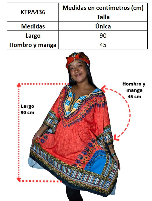 Vestido Afrodescendiente de Dama con mangas Afrocaribeña
