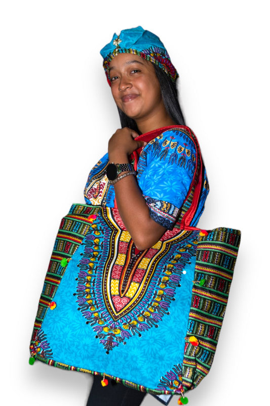 Blusa de Dama Afrocaribeño Azul con Flecos