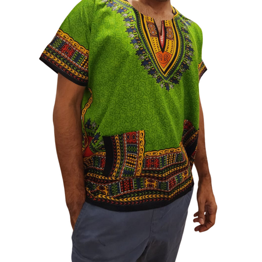 Camisa Juvenil con Estampado Afrocaribeño Verde