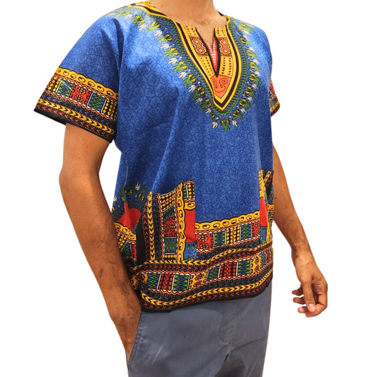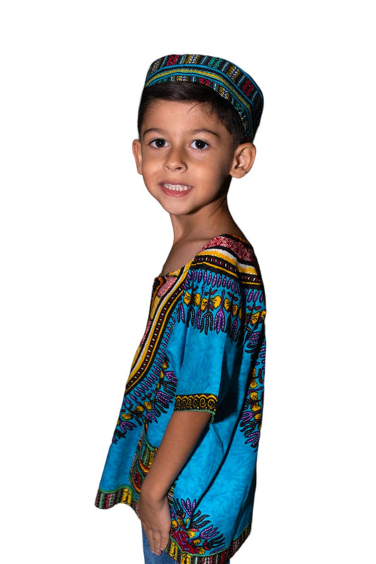Camisa Dashiki de Niño Afrocaribeño Azul con Bolsillos