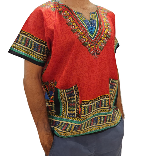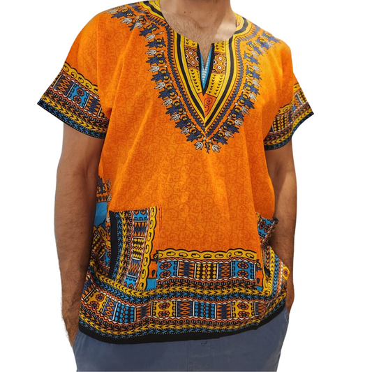 Camisa Dashiki de Niño Afrocaribeño Naranja con Bolsillos
