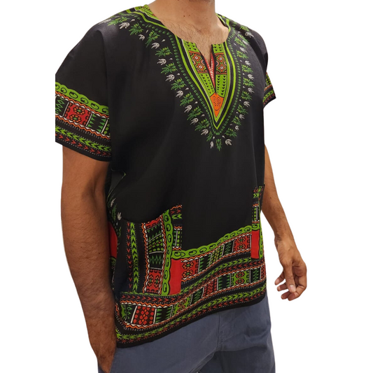 Camisa Juvenil con Estampado Afrocaribeño Negro