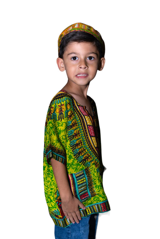 Camisa de Niño con Estampado Afrocaribeño Verde