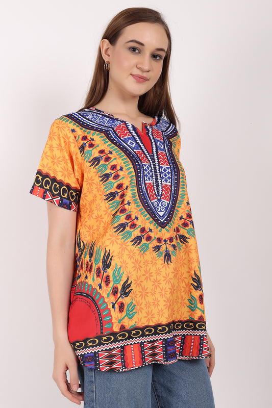 Blusa Afrocaribeña de Dama Estampado Amarillo