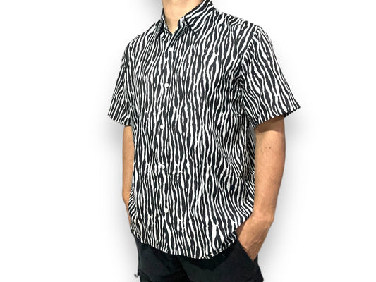 Camisa de Hombre de Botones Estampado Afrocaribeño Negro