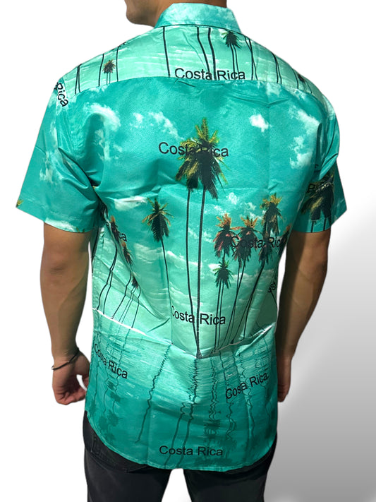 Camisa Hawaiana Playera Caribeña de Caballero Estampado Palmera