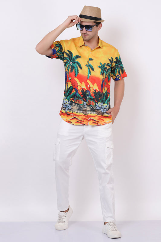 Camisa de Hombre de Botones con Estampado Afrocaribeño Naranja