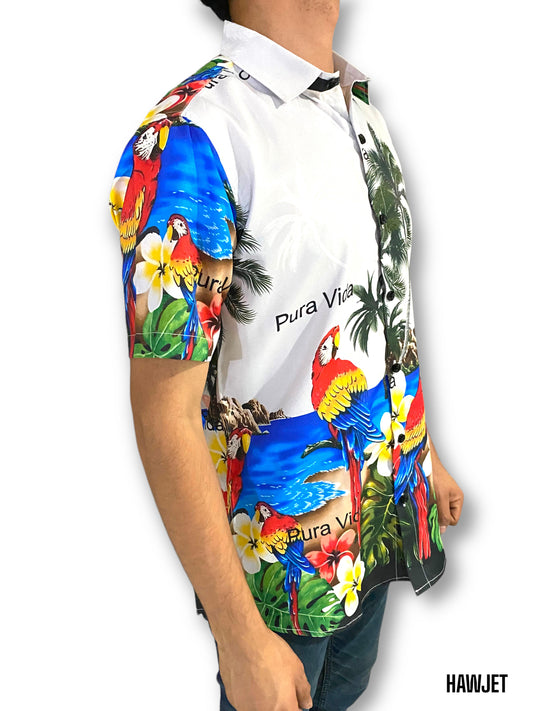 Camisa Hawaiana Playera Caribeña Fucsia de Caballero