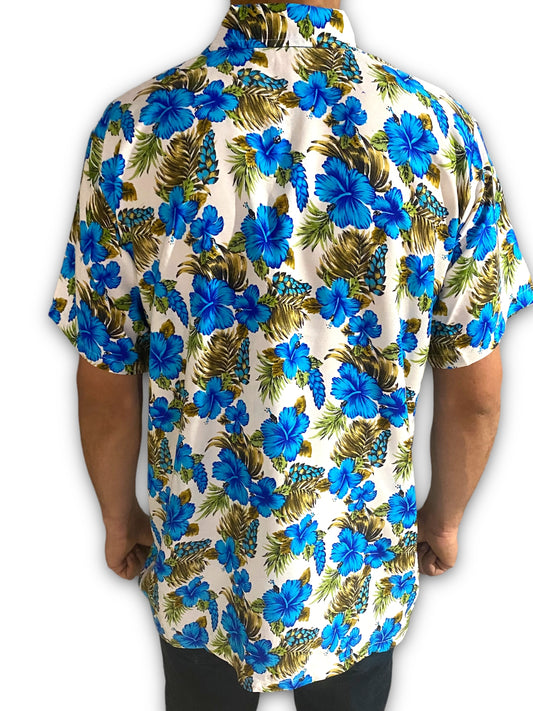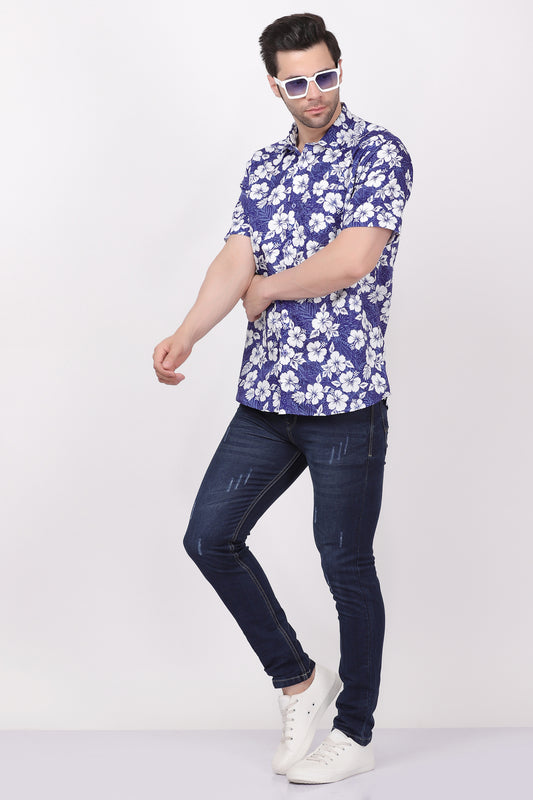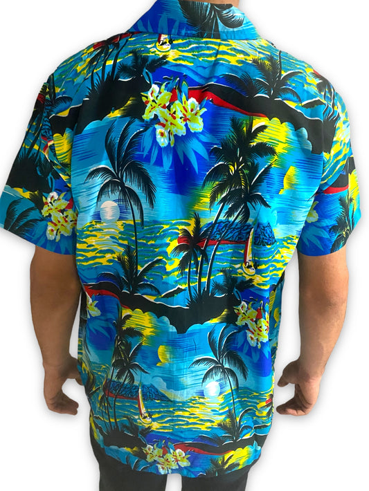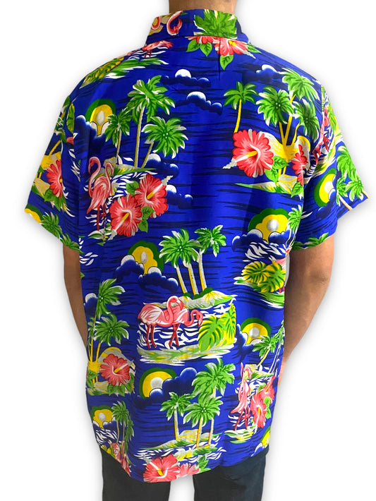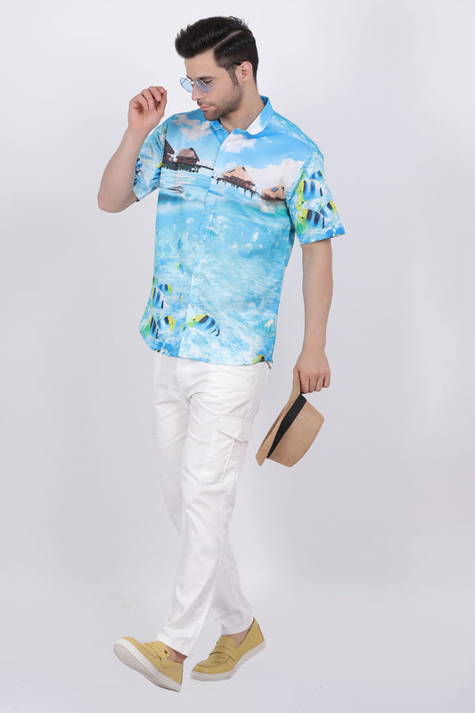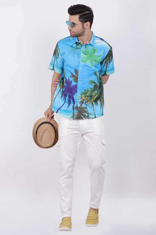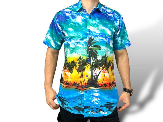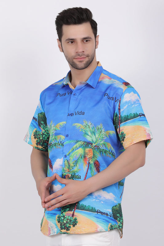 Camisa de Hombre de Botones con Estampado Afrocaribeño Azul