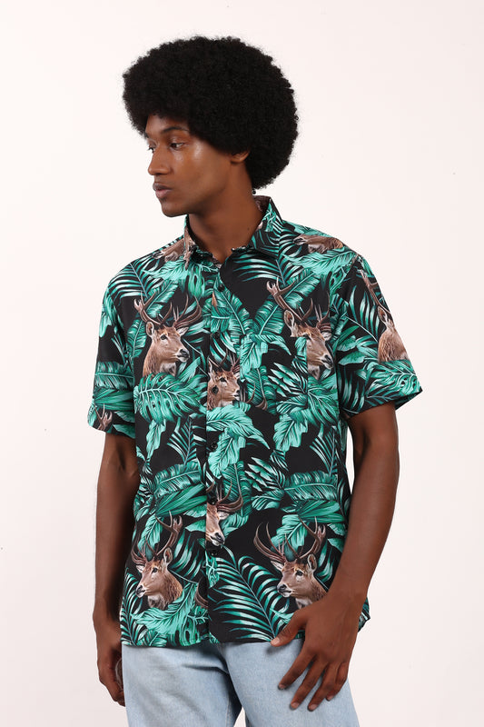 Camisa Hawaiana Playera Caribeña de Caballero Estampado Venados