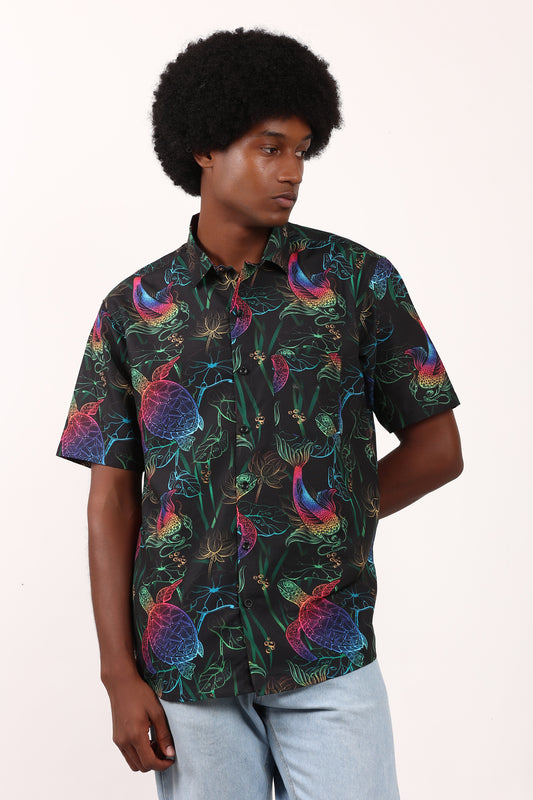 Camisa Hawaiana Playera Caribeña de Caballero Estampado Tortugas Neon