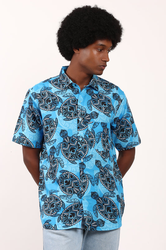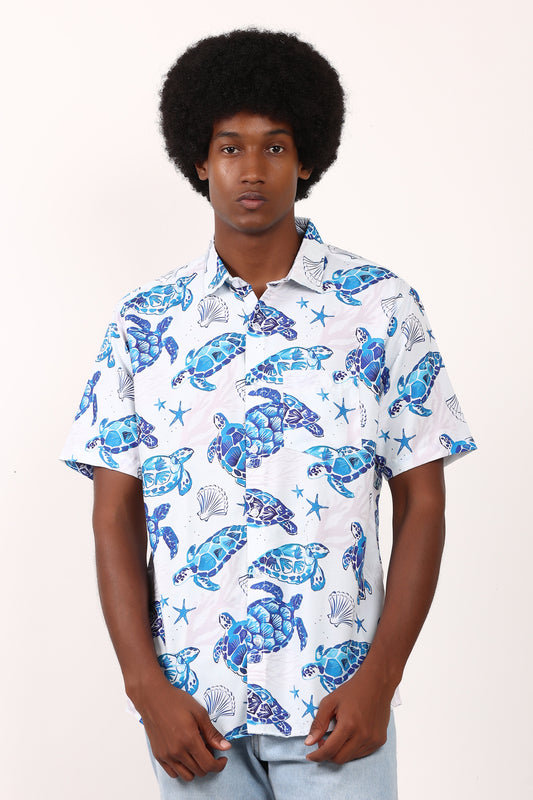 Camisa Hawaiana Playera Caribeña de Caballero Estampado Tortugas Azules