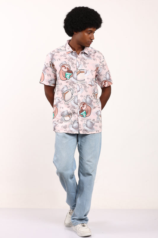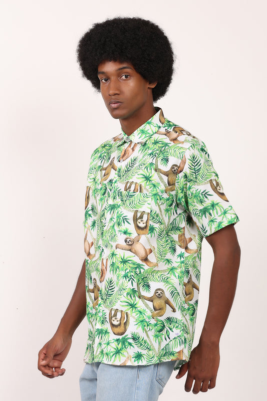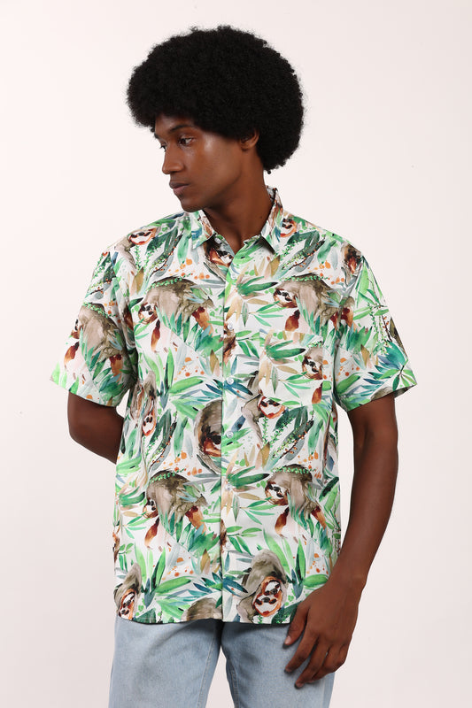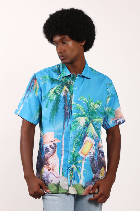 Camisa Hawaiana Playera Caribeña de Caballero Estampado Oso Perezoso Aloha