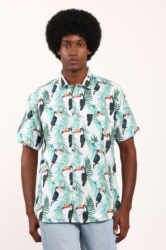 Camisa Hawaiana Playera Caribeña de Caballero Estampado Tucanes Pequenos