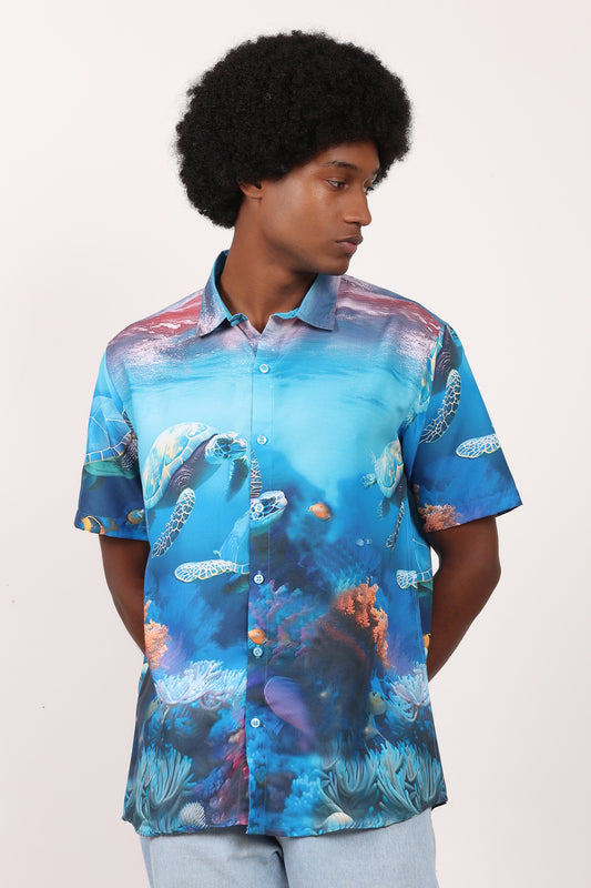 Camisa Hawaiana Playera Caribeña de Caballero Estampado Tortuga Oceánica