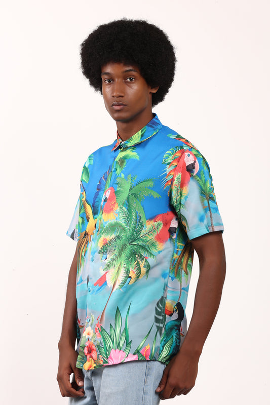 Camisa Hawaiana Playera Caribeña de Caballero Estampado Lapas y Tucan