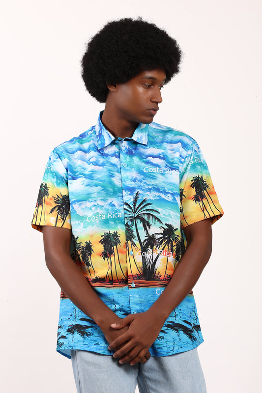 Camisa Hawaiana Playera Caribeña de Caballero Estampado Palmeras Costa Rica