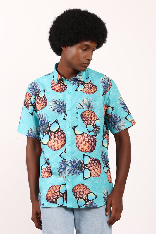 Camisa Hawaiana Playera Caribeña de Caballero Estampado Pina