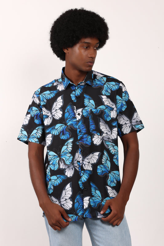 Camisa Hawaiana Playera Caribeña de Caballero Estampado Mariposas