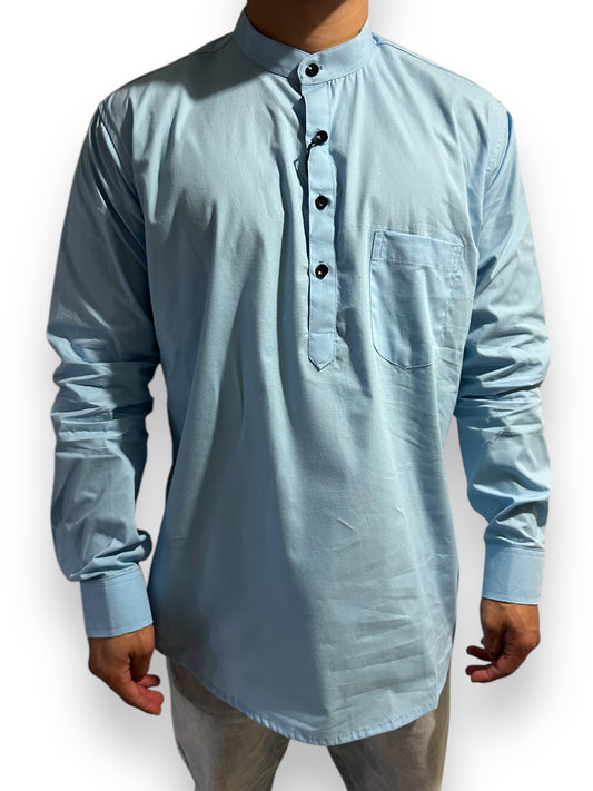 Camisa Azul Cielo Hombre Mangas Largas Cuello Chino