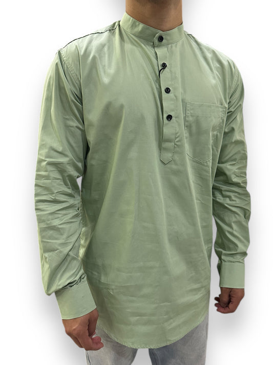 Camisa Verde Claro de Hombre Mangas Largas Cuello Chino