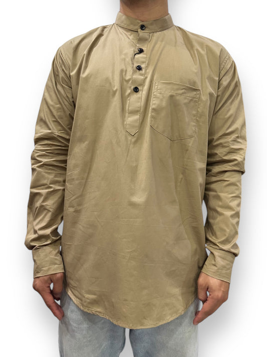 Camisa Khakhi de Hombre Mangas Largas Cuello Chino