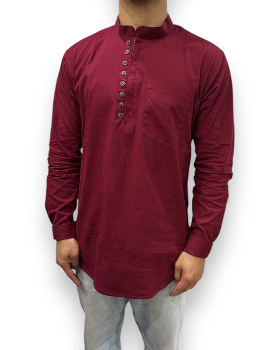 Camisa Vino Hombre Mangas Largas Cuello Chino
