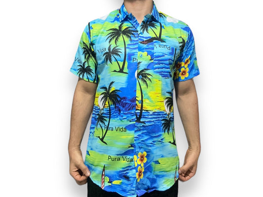 Camisa Hawaiana Playera Caribeña de Caballero Estampado Cerveza Pura Vida