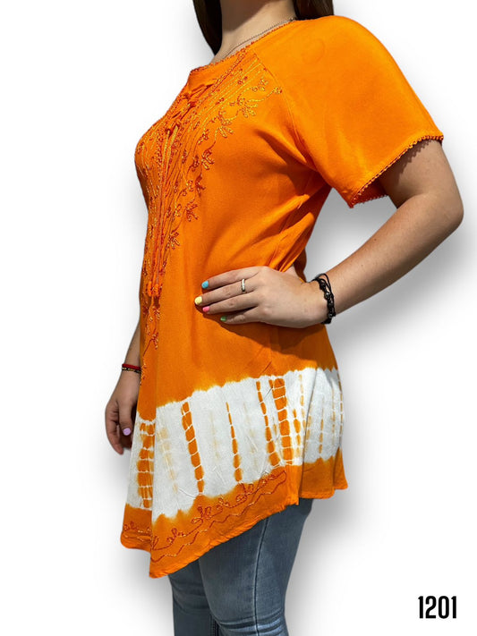 Top Blusa de Dama Naranja Estampado sin Mangas