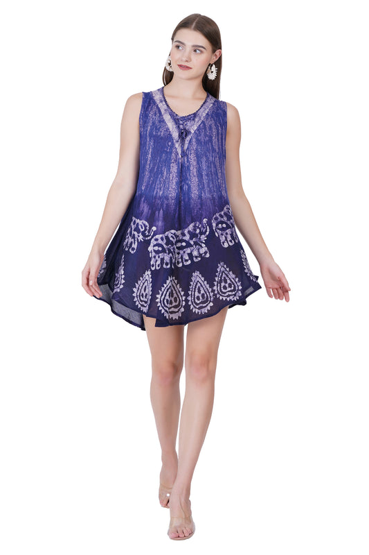 Vestido Corto de Dama Estampado Azul sin Mangas