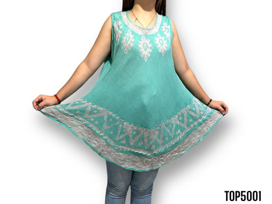 Blusa de Dama Afrocaribeño Verde con Flecos