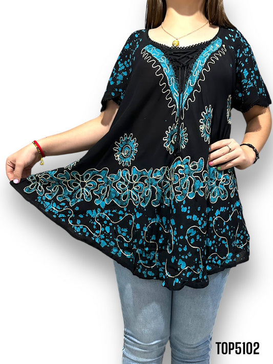 Blusa de Dama Afrocaribeño Azul con Flecos