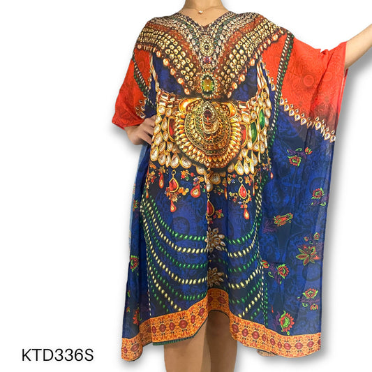 Vestido de Dama con Estampado Digital y Piedras Brillantes
