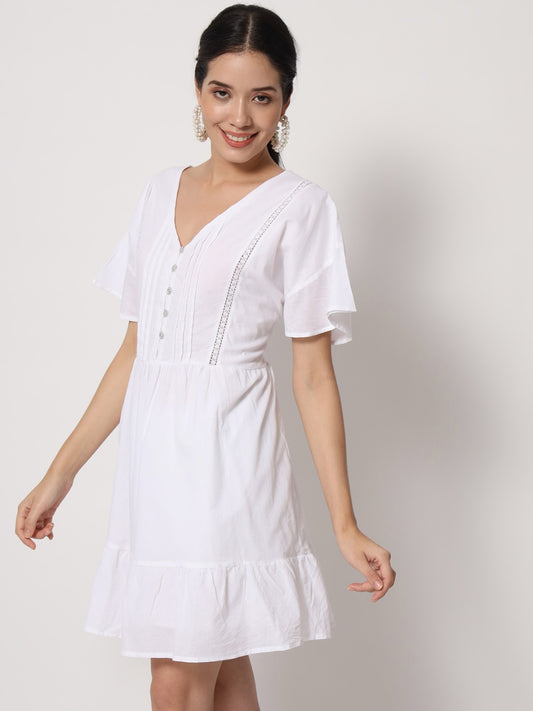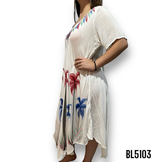 Vestido Blanco Estampado Floreado de Dama con mangas