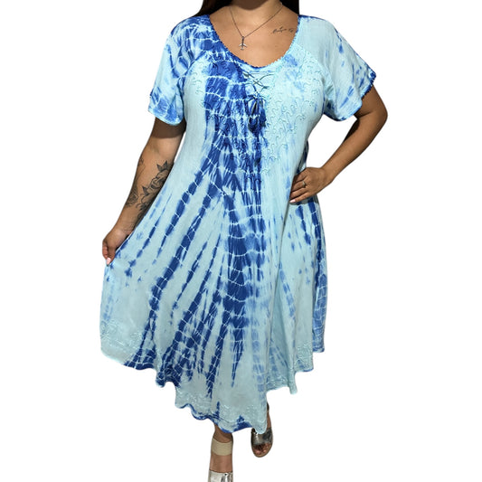 Vestido de dama con mangas azul