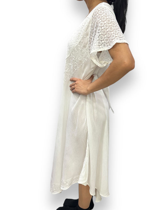 Vestido de dama blanco con mangas con bordados