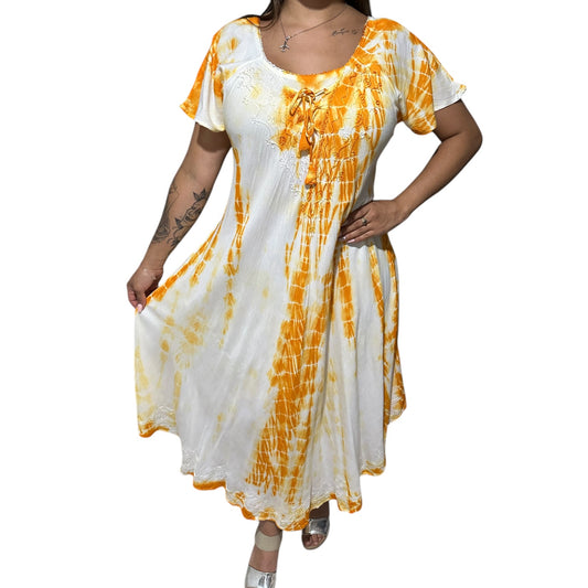 Vestido de dama con mangas amarillo