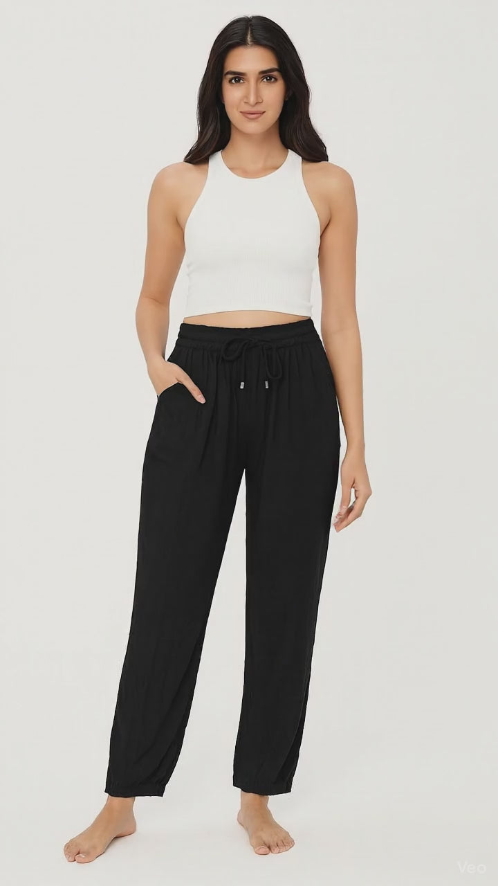 Disfrutá la comodidad de un pantalón ligero, suave y perfecto para cualquier día. Su tela fresca y caída natural lo hacen ideal para andar relajada, salir a hacer mandados o combinarlo con tus blusas favoritas.