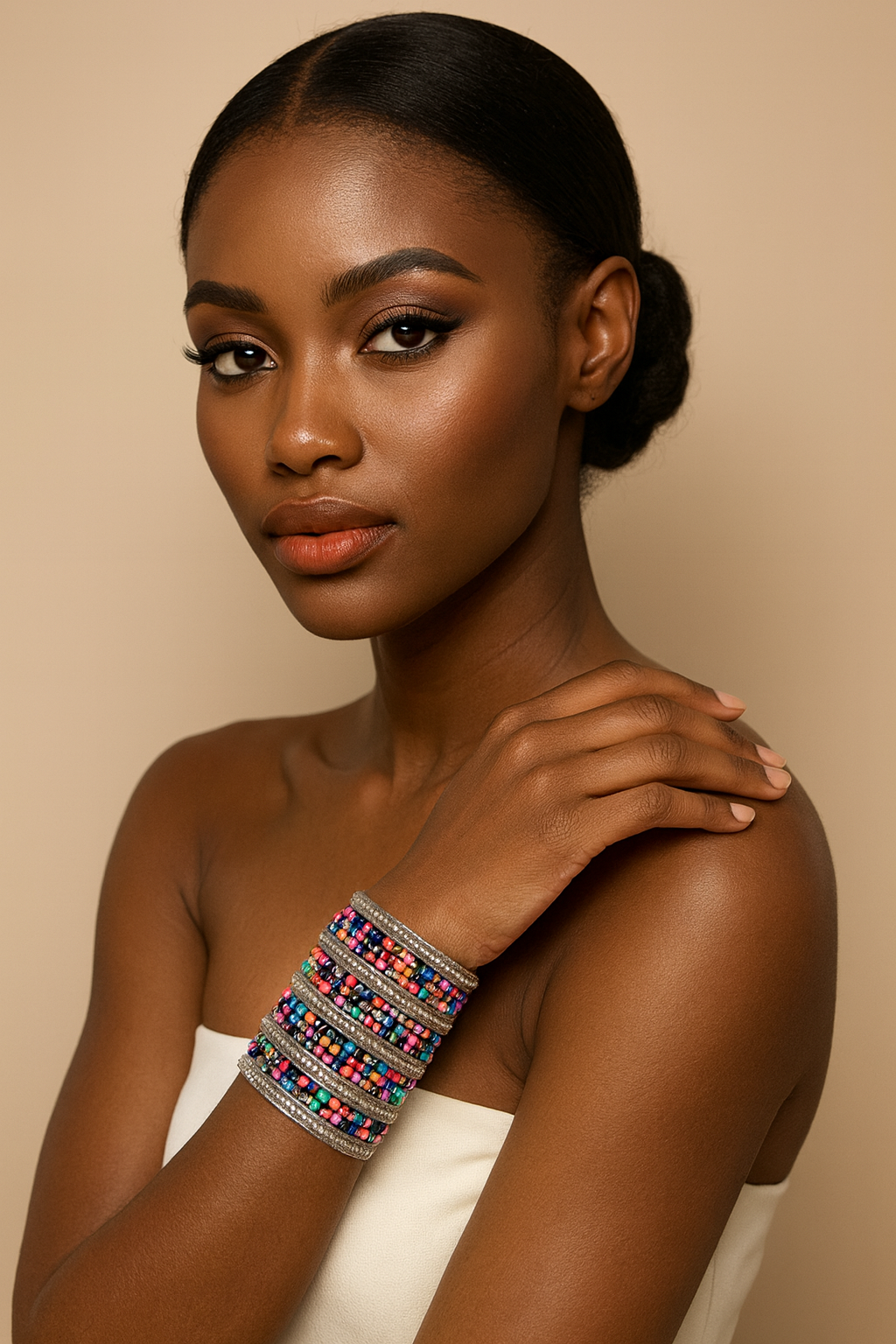 Nuestra pulsera india es una pieza única inspirada en la rica tradición artesanal de la India. Cada diseño refleja detalles étnicos y un estilo bohemio que aporta personalidad y autenticidad a cualquier look.