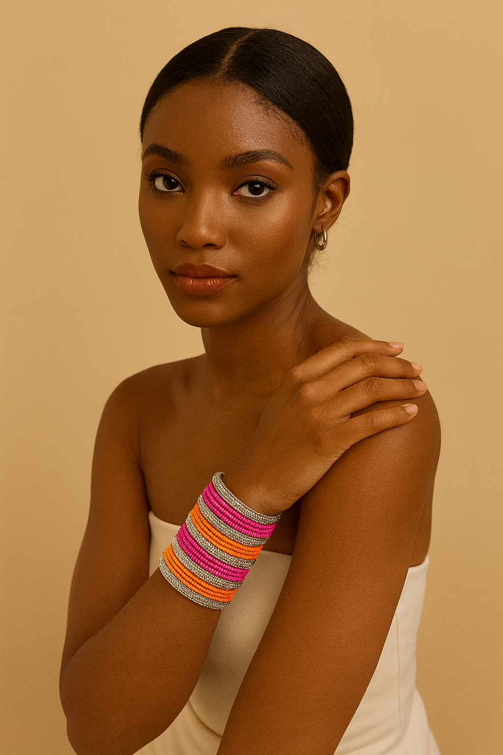 Nuestra pulsera india es una pieza única inspirada en la rica tradición artesanal de la India. Cada diseño refleja detalles étnicos y un estilo bohemio que aporta personalidad y autenticidad a cualquier look.