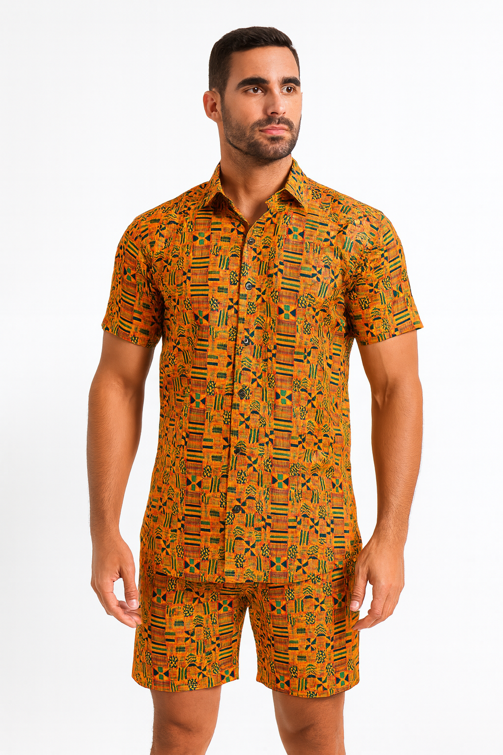Set Conjunto Traje Afrodescendiente de 2 Piezas para Hombre (Camisa + Short) Afrocaribeño